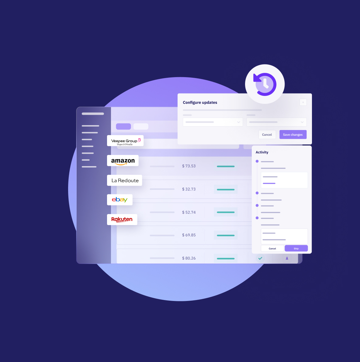 As a SaaS solution that’s intuitive and ergonomic, the Shoppingfeed platform is designed to be used easily by all, no matter the level of expertise. After one simple onboarding session, you'll be able to centralize and automate your e-commerce operations with complete autonomy.